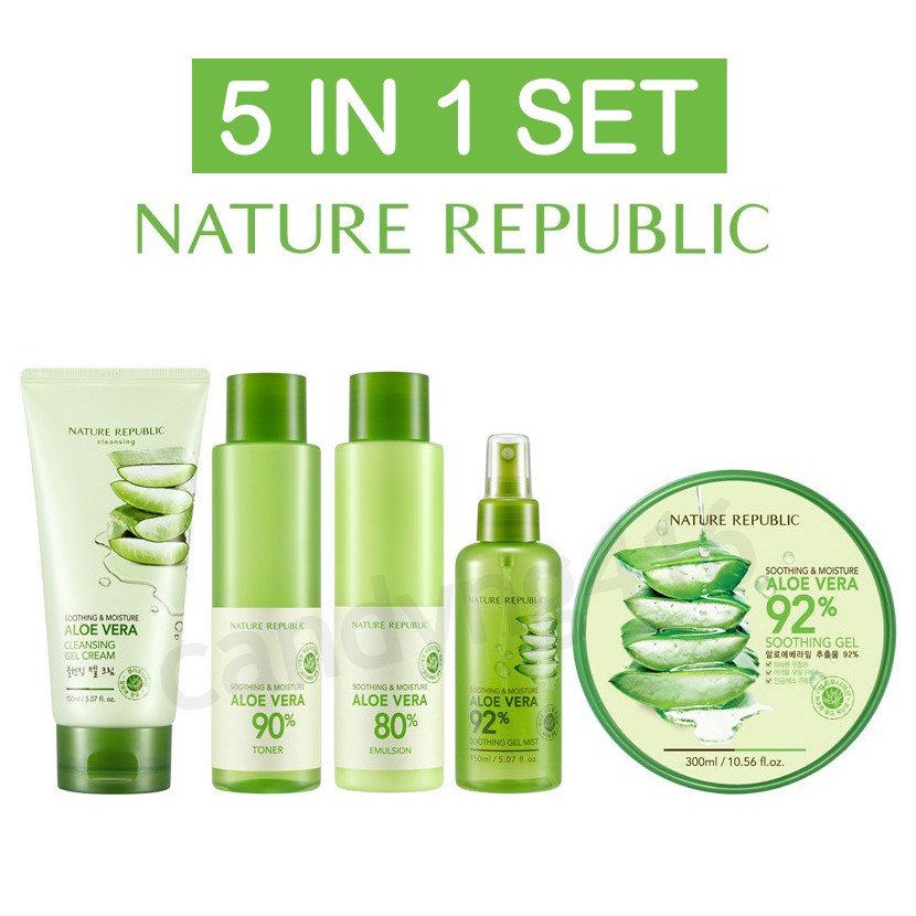 All 4 Aloe Set Nature Republic Aloe Vera Soothing Moisture Toner Emulsion Essence Cream Serum Shopee Indonesia
